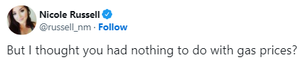 《華盛頓觀察家報》和《每日信號》撰稿人拉塞爾推特截圖 路易斯安那州參議員比爾·卡西迪稱:“換句話說,與拜登上任時相比,美國人一個月的人均加油費增加了100多美元。”福克斯新聞網稱,拜登上任時,美國平均汽油價格為2.39美元/加侖;本周一,美國平均油價為4.36美元/加侖。 “與一年前的價格做做對比吧,騙人的推銷員。”保守派媒體人卡斯·迪倫發推說。