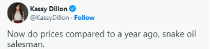 保守派媒體人卡斯·迪倫推特截圖 福克斯新聞網說,現在仍有很多美國人面臨接近歷史最高水平的油價。而拜登此前稱,高油價和通貨膨脹嚴重都是由於俄烏軍事衝突導致,是“普京漲價”。對此有網友表示:“既然你把漲價歸咎於普京,我們是不是應該把降價歸功於他?”(完) 【編輯:關秀英】