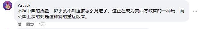 還有網友一語道破:英國首相選舉成為比拼誰對中國更“強硬”的競賽。什麼強硬啊,美國的對華政策就像狗鏈子拴住英國的脖子,倫敦不過是替美國主子吠叫罷了。 【編輯:俞丹鳳】