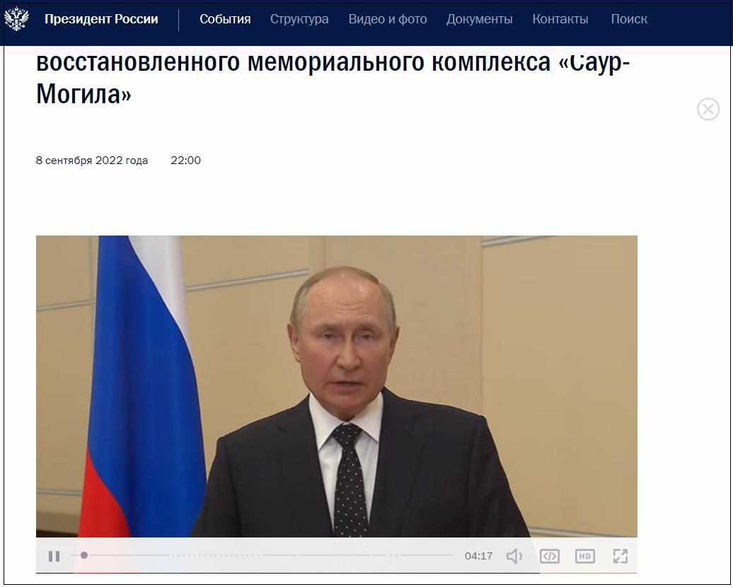 克里姆林宮公告截圖 普京指出,“薩烏爾-莫吉拉”紀念館是由附近居民和礦工共同出資建造的,真正屬於人民,但在2014年,新納粹在這里發動了一場新的戰爭,紀念館幾乎毀於一旦,但頓巴斯民兵無私地捍衛了他們的家鄉,重復了先輩的壯舉。 “令人欣慰的是,這個雄偉的建築群得到了精心修復,方尖碑再次高矗,蘇聯士兵雕塑相伴而立。”普京說道,“我們緬懷我們的親人,我們保留並紀念他們的榮譽。” 隨後,普京談到了一些國家拆除蘇軍紀念碑的行為,“我們痛心地看到,他們如何嘲弄歷史,如何無恥地背叛自己的父輩、祖父輩和曾祖父輩。對於俄羅斯來說,所有這一切都不可思議,修復頓巴斯保衛者的紀念碑就是要讓所有摒棄自己的先輩和忘記歷史教訓的人警醒。” “薩烏爾-莫吉拉”是位於頓巴斯地區的一處高地,海拔277.9米。在衛國戰爭期間,納粹德國第6國防軍曾在這里建造了巨大的防禦工事,長104公里,深12公里,總共約有800個防禦據點。1943年7月,蘇聯紅軍在一個多月的激戰後奪回了高地的控制權。 戰後,為紀念蘇軍烈士,該地豎起了一座紀念碑,並於1967年改建成了“薩烏爾-莫吉拉”紀念館,主要建築有一座36米高的花崗巖方尖碑和一座蘇聯士兵雕塑。 然而在2014年,在“頓涅茨克共和國”與烏克蘭政府軍的交戰中,紀念館因烏軍炮擊而遭到嚴重毀壞。今年7月1日,紀念館在俄羅斯國防部的牽頭下開展修復工作,8月30日完成。 據悉,今年俄烏衝突爆發以來,不斷有原蘇聯地區的國家拆除蘇軍烈士的紀念碑,8月25日,位於拉脫維亞首都里加市的蘇聯“里加解放者”紀念碑被拆除;8月16日,愛沙尼亞政府決定開始將包含俄語城市納爾瓦在內的蘇聯時期二戰紀念碑從公共場所移除;6月22日,衛國戰爭紀念日,立陶宛克萊佩達市決定拆除蘇聯戰士紀念雕塑群。 克宮發言人佩斯科夫8月5日曾表示,這種行為否認歷史,對任何國家都不利,“那些紀念碑意味著一場有著共同歷史的戰爭把歐洲從法西斯主義手中拯救出來”,拆除紀念碑“令人發指”。 【編輯:馬華】