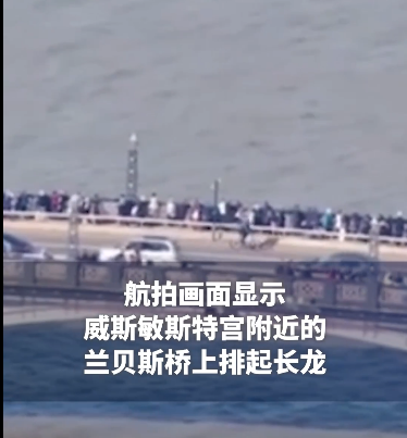 視頻截圖 綜合外電報道,女王星期三(9月14日)停靈國會大廈後,威斯敏斯特教堂當天下午5時正式開放給民眾向女王告別,直到下星期一(19日)國葬日當天。 根據英國政府文化、媒體及體育部更新的排隊情況,截至15日早上9時左右,隊伍長約4.5公里。排隊者來自不同年齡層,多數是英國人,但也有外國人。