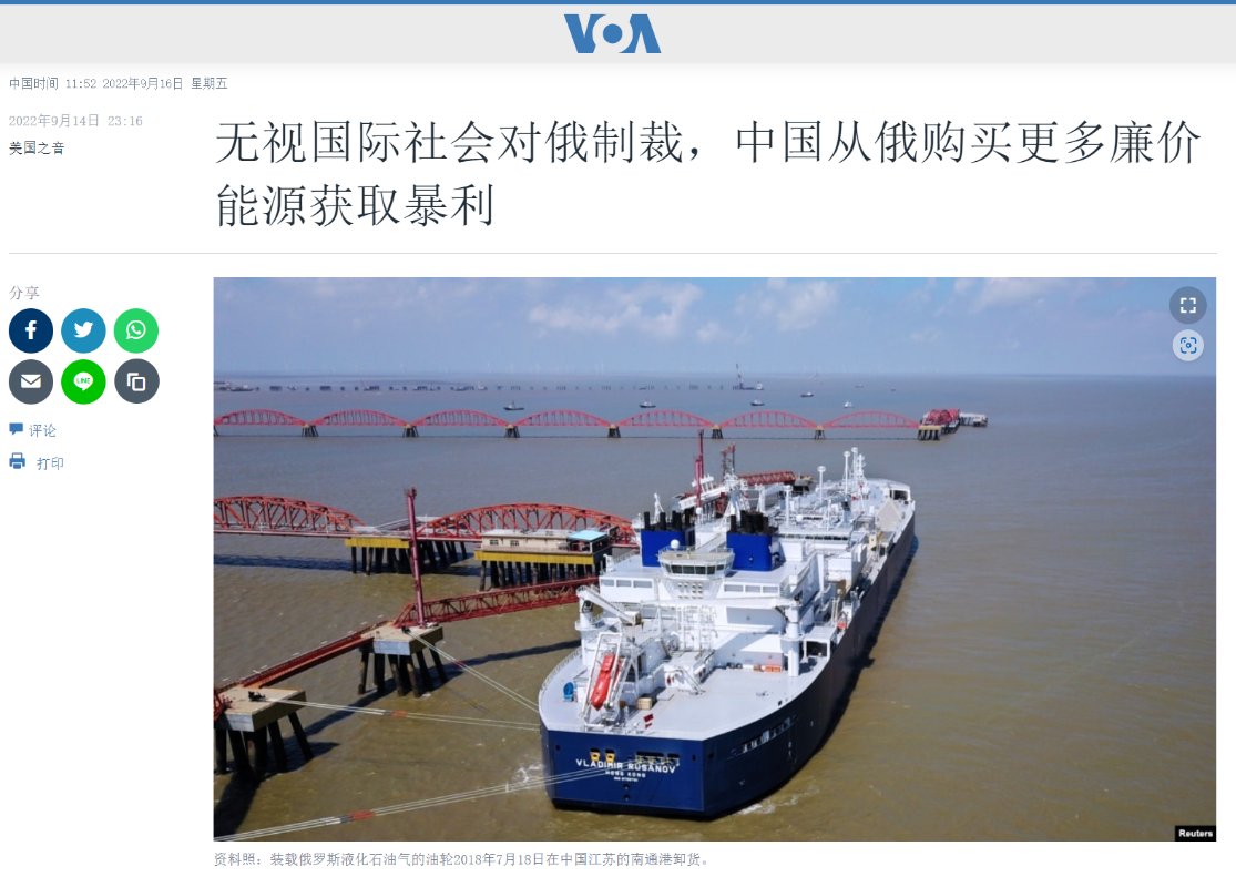 香港新聞網9月16日電 對美軍多次偷盜敘利亞石油的醜行避而不談,卻對中國進行合法的國際貿易指指點點?被指一貫“雙標”的“美國之音中文網”14日發表一篇題為“無視國際社會對俄制裁,中國從俄購買更多廉價能源獲取暴利”的文章,矛頭直指中俄兩國之間的能源貿易。