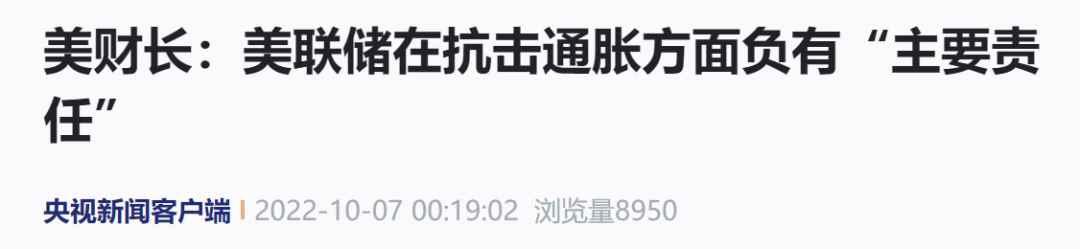 當地時間10月6日,美國財長耶倫表示,面臨高通脹的國家的首要任務是恢復物價穩定。美聯儲在抗擊通脹方面負有“主要責任”,富裕國家的貨幣緊縮可能會產生國際溢出效應。