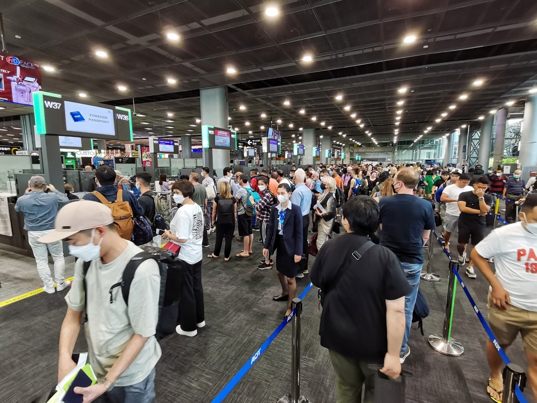 香港中通社11月16日曼谷電 題:曼谷印象:歐美旅客擠滿入境大廳當地市民謹慎防疫 香港中通社記者 陳卓儀 2022年的亞太經濟合作組織會議在泰國曼穀舉辦,這座亞洲著名旅遊城市在疫後的復甦牽動東南亞經濟。香港中通社APEC報道團在曼谷蘇凡納布機場一落地,便感受到曼穀對國際旅客的魅力依舊。 目前,由香港入境泰國不需要新冠病毒檢測證明、不查驗疫苗接種情況,甚至不需提前填寫健康申報。
