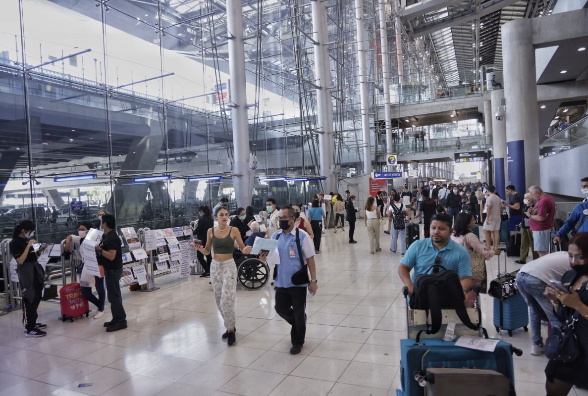 入境大廳內排滿了等待檢查護照的旅客。(曹文毓攝) 一眼望去,一半是歐美面孔,人字拖、花裙子、大背心,有些輕便背包,有些則拖家帶口,電話卡辦了整整兩個月,計劃住上一個冬天。 泰國口罩令已經放開。機場的旅客有三分之一並沒有戴上口罩,戴口罩的有露出鼻子的,也有極謹慎緊捂N95的。 在曼穀蘇凡納布機場,一位海關人員把口罩拉到下巴位置,展現“微笑國度”的熱情。他告訴中通社記者,在泰國是否配戴口罩全憑自願。 “請問您打了幾針疫苗?”面對這個提問,記者好奇難道入境還有接種要求,他得到“三針”的回答後說,“我打了四針了,幾個月前還是確診了,但我症狀不重,在家里休息,沒有去醫院。” 泰國疫情趨於穩定,10月1日起將新冠肺炎由“危險傳染病”,降級為“受監測傳染病”,與流感和登革熱同個級別。據官方統計,在11月的第二周,泰國新增確診約3100宗,平均每日450宗。 在泰國旅遊,即便確診也不要求隔離,僅建議戴口罩。在曼谷看到的景象,讓人感受到市民對於新冠的態度有些曖昧,或許是外國旅客增加,機場和市中心配戴口罩的當地人還是不少。