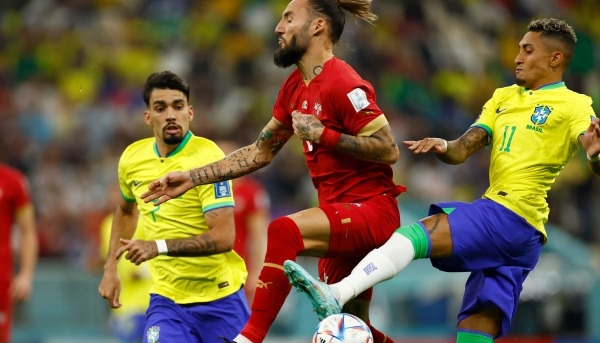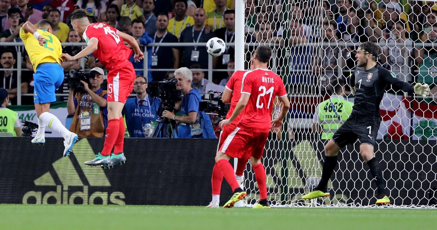 2018年俄羅斯世界盃賽場,塞爾維亞隊(紅色球衣)在與巴西隊較量。圖片來源:國際足聯官方網站 【編輯:吳一帆】