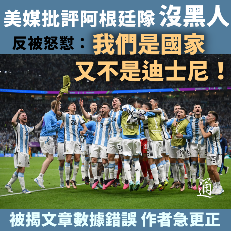 美媒批評阿根廷隊沒黑人被網友狂懟 最終因數據錯誤要更正分享到: