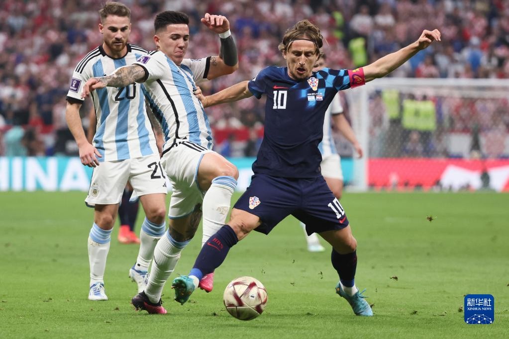 莫德里奇(右)在比賽中拼搶。(新華社) 這場比賽第32分鐘,阿根廷隊的恩佐·費爾南德斯中場傳出過頂球,他的隊友阿爾瓦雷斯高速插入禁區挑射,遭遇克羅地亞隊門將利瓦科維奇的犯規,主裁判判罰點球。阿根廷隊由梅西主罰命中。之後在比賽的第39和69分鐘,阿爾瓦雷斯兩次破門成功,最終阿根廷隊3:0大比分取勝。 賽後,莫德里奇發表了自己的看法:“(阿根廷隊)第一個進球在我看來不是點球。在此之前,本應該是我們的角球,之後裁判判罰了點球。我認為(點球)不存在。” 他還表示這粒點球對比賽進程影響不小:“點球打破了比賽,在這之前我們踢得很好,掌控住了比賽。我們在進攻方面缺乏一些攻擊性,但是我們並沒有問題,對手也沒有製造問題,直到那粒點球。我認為在這樣的比賽中不是點球。” 37歲的莫德里奇是克羅地亞隊靈魂人物,他是上屆世界盃克羅地亞隊奪得亞軍的功臣,也是2018年金球獎獲得者。卡塔爾世界盃很可能是他最後一屆世界盃征程。半決賽第80分鐘,當莫德里奇被換下場,全場觀眾以掌聲向他致敬。(完) 【編輯:吳一帆】