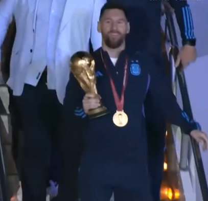 香港新聞網12月20日電 當地時間20日凌晨,在2022年卡塔爾世界盃奪冠後,球王梅西與阿根廷隊乘坐的飛機抵達阿根廷首都布宜諾斯艾利斯。