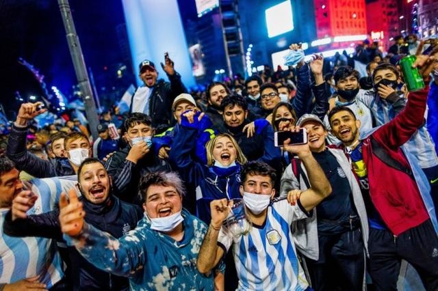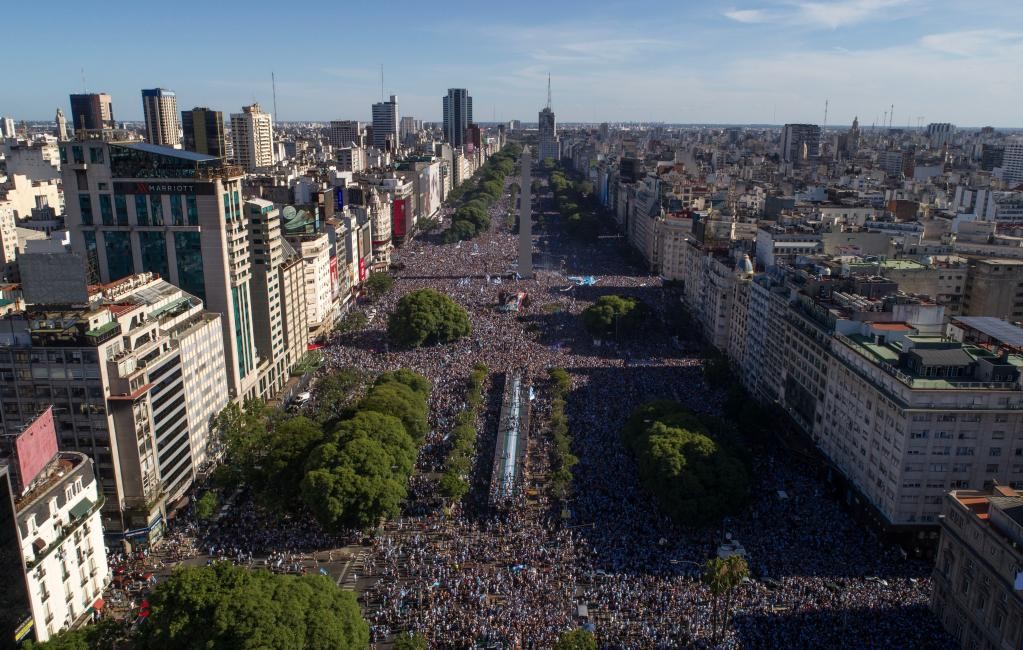 圖:新華社 19日,在奪冠消息傳出後,在布宜諾斯艾利斯,已有大批民眾在戶外慶祝球隊奪得世界盃冠軍。