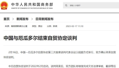 厄瓜多爾總統拉索 新華社發(厄瓜多爾總統府供圖) “開啟2023年的好消息。中國和厄瓜多爾之間的(自貿協定)談判已經圓滿結束,”報道稱,拉索當天在推特發文寫道,通過這一自貿協定,厄瓜多爾的產品將優先出口至中國,該國製造商將能以更低成本獲得中國的設備和產品。 路透社稱,厄瓜多爾工業和生產部在一份聲明中說,“這項貿易協定將允許厄瓜多爾目前99%的對華出口產品獲得優惠准入,特別是蝦、香蕉、玫瑰和鮮花、可可豆、咖啡等農業和農工業產品。” 去年2月10日,在中國商務部舉行的例行新聞發佈會上,新聞發言人高峰介紹,中國與厄瓜多爾已正式啟動自貿協定談判。高峰說,中厄建交42年來,雙邊經貿關係持續穩定健康發展。2021年,雙邊貿易額逆勢增長44.6%,達到109.4億美元,中國繼續保持同厄瓜多爾的第二大貿易夥伴關係。厄瓜多爾也是中國在拉美地區重要的投資和承包工程合作夥伴,雙方合作涉及電力、能礦、交通等眾多領域。 據中國海關總署國際合作司網站上月12日發佈的消息,2022年12月1日及7日,中國海關派員參加中國-厄瓜多爾自貿協定談判會議,雙方就海關程序與貿易便利化議題進行了全面深入磋商並取得積極進展。(完) 【編輯:李雪萍】