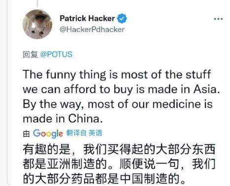 “順便說一句,我們的大部分藥品都是中國製造的!”