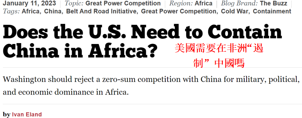 美國《國家利益》報道截圖 文章稱,美國於上個月舉行“美非領導人峰會”,旨在與中國、俄羅斯、土耳其、阿聯酋,以及其他一些國家爭奪在非洲的影響力。 據《紐約時報》報道,中國已向非洲國家提供了高達600億美元的援助和貸款,在這場“爭奪非洲影響力”的競爭中處於領先地位,而美國則處於落後地位。但是,這樣的“落後”對於美國來說其實并不是一件“壞事”。 二戰後的冷戰期間,美國一改傳統,不再對參加海外戰爭持“謹慎態度”。在這場長達四十二年的冷戰中,美國耗費了大量的鮮血和財富以抑制“不友好勢力”,并最終擊退了蘇聯陣營。 這使美國建立起了一種“肌肉記憶”,讓美國在其它地區獲得越來越“縹緲”的影響力。當蘇聯突然解體,美國被認為“贏得了”冷戰時,這種非典型的“美國干預主義”似乎也獲得了勝利。 實際上,蘇聯的解體是因為其搖搖欲墜的經濟無法再支撐其過度擴張。如果美國沒有插手朝鮮戰爭和越南戰爭,而是讓蘇聯來承擔管理它們的成本,也許蘇聯會解體得更快。