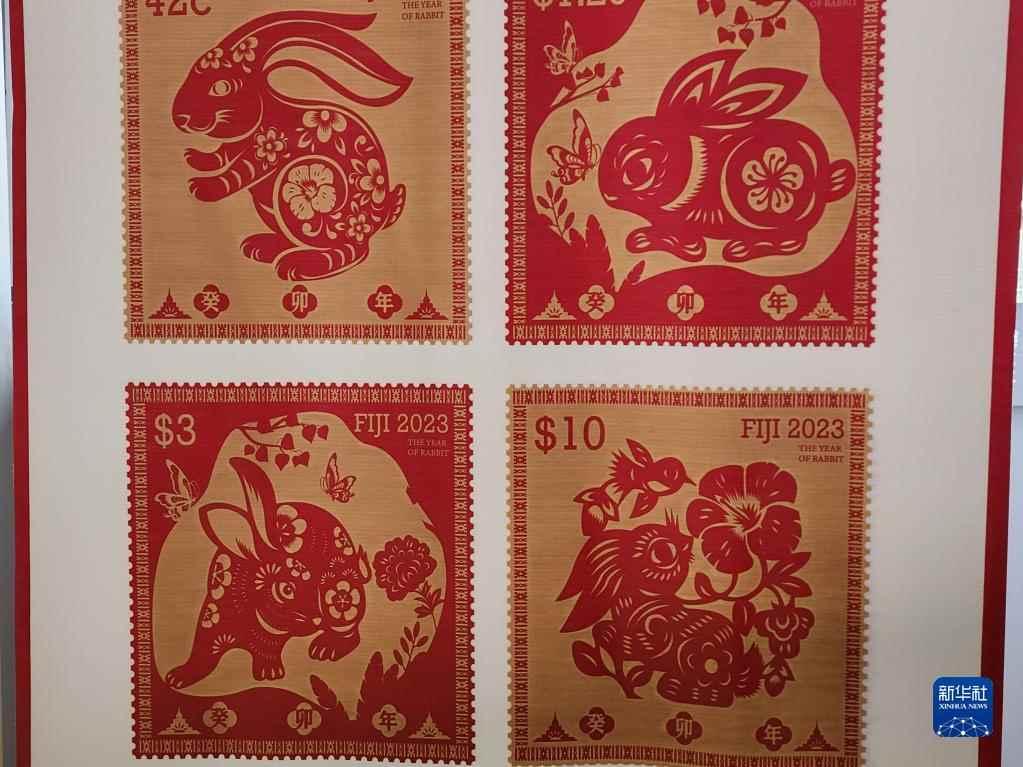 這是1月18日在斐濟首都蘇瓦的斐濟中國文化中心拍攝的中國農曆兔年生肖郵票,本套兔年生肖郵票共4枚,設計創意來源於中國剪紙。來源:新華社 發行儀式在位於首都蘇瓦的斐濟中國文化中心舉行。中國駐斐濟大使館臨時代辦王旭光致辭說,“兔”代表著希望和無限生機,新的一年將有更多的中國人走出國門,擁抱世界。有理由期待中斐文化交流在農曆兔年更加豐富多彩,為中斐兩國友好關係提供更強大動力。 斐濟土著事務部文化、遺產和藝術司司長柯林·揚巴基表示,中斐友好關係近年來不斷加強,兩國文化交流涉及諸多方面,相信此次兔年生肖郵票的發行必將進一步促進兩國文化交流與合作。 斐濟中國文化中心主任韓小燕介紹,本套兔年生肖郵票共4枚,設計創意來源於中國剪紙。郵票邊框採用了斐濟傳統圖樣,生肖兔剪紙的鏤空裝飾則使用斐濟本地常見的扶桑花和中國的牡丹,生動展現兩國民俗文化特色。首日封則選用了真實的兔子照片作為主體形象,在視覺上與郵票形成反差。 自2016年以來,斐濟郵政有限公司與斐濟中國文化中心連續8年合作發行生肖郵票。每年的郵票設計均凸顯中國和斐濟兩國文化特色,承載交流文化、加深友誼的美好寓意。 另外,聯合國郵政管理局將於2023年1月20日在紐約發行中國農歷癸卯兔年特別版郵票版張,慶祝中國農歷新年的到來。聯合國郵政管理局2010年5月首次發行以中國生肖為內容的郵票,到2021年已發行了首輪12張生肖郵票。2023年的兔年郵票是第二輪生肖郵票的第二張。(完) 【編輯:胡雪石】
