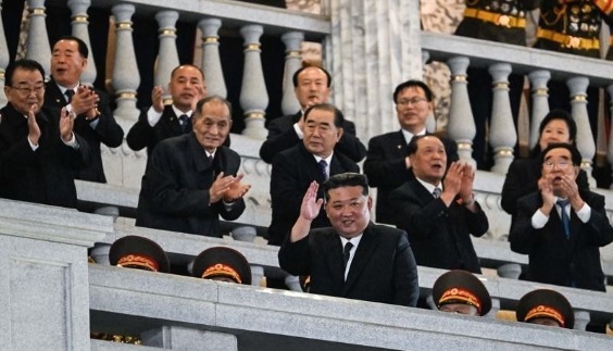 (圖:朝中社) 據朝中社8日報道,金正恩同女兒7日一起抵達朝鮮人民軍將領宿舍,國防省指揮官、朝鮮人民軍大聯合部隊和聯合部隊軍政指揮官們迎接。在隨後舉行的朝鮮人民軍建軍75周年紀念宴會上,金正恩發表講話,總結了人民軍的歷史,讚頌軍隊繼承了先輩堅定的革命精神和誓死抗戰的鬥志。