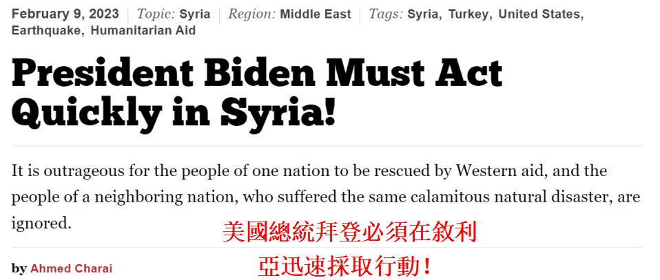 土叙強震拜登政府大玩“雙標”,連美媒都看不下去了!分享到: