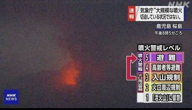 視頻截圖 據日媒報道,從上周開始,櫻島火山噴發一直在進行,南岳山頂火山口和昭和火山口都發生了噴發。當地氣象局表示,早在1月18日,他們就於櫻島觀測到細微的地殼變動,顯示山體正在膨脹。1月23日到24日下午3時,南岳山頂火山口共發生4次噴發。 2月8日上午11時左右,櫻島昭和火山口又接連發生兩次噴發。這也是該火山口自2018年4月初以來,時隔近5年再次噴發。日本專家稱,昭和火山口5年後再噴發,可能是地下岩漿庫擴張造成的。2月9日下午,櫻島南岳山頂火山口噴發,火山灰上升至空中2000米的高度。 日本氣象廳已把櫻島的火山警戒級別列為3級(最高為5級),要求當地民眾遠離該火山,並注意火山口方圓2公里範圍內的火山岩和火山碎屑流。 中國山東科技大學地球科學與工程學院副院長孟元庫表示,如果櫻島火山像去年大規模爆發,火山灰有十公里以上的高度,就能到達平流層。這時火山灰能够水平運動,阻擋太陽光,吸收其中的能量,從而降低地球的溫度。 根據地球物理學,火山噴發是地質活動的結果,與板塊構造有關。當岩漿房裡的岩漿達到通量之後,火山就會噴發,且時隔幾年還可能再次噴發。 從2月8日開始,日本已報告了多次火山活動。同樣位於鹿兒島縣的諏訪之瀨島禦岳火山口8日噴發3次,其中一次噴發的火山灰高度為1000米。 此外,位於熊本縣的阿蘇山從8日清晨開始也出現較大幅度的火山性微動。(完) 【編輯:胡雪石】