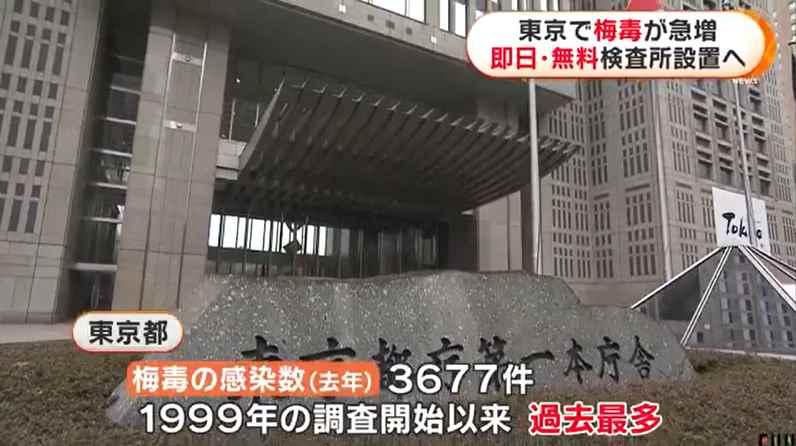 日媒報道東京梅毒患者數激增情況 來源:日本富士電視台 東京都政府稱,2022年一年內,東京梅毒感染病例為3677例,這是自1999年有統計資料以來的最多數值。特別是女性病例,近10年來增加40倍,大部分為20多歲患者。因患者激增,東京都將從3月起開設多個梅毒免費檢測場所。 日本性感染症學會資料顯示,1949年日本報告了近18萬例梅毒病例。後來,隨著抗生素的廣泛使用,梅毒病例顯著減少,上世紀90年代年均病例數在500例左右。但2011年以來,確診病例連續多年增加。目前尚不清楚日本梅毒病例激增的確切原因。 梅毒是一種細菌型的性傳染病,病原體是螺旋菌菌種梅毒螺旋體的一種亞種。主要透過人類性行為傳播,該疾病也可由母親在懷孕或分娩時傳染給胎兒,導致先天性梅毒。(完) 【編輯:胡雪石】