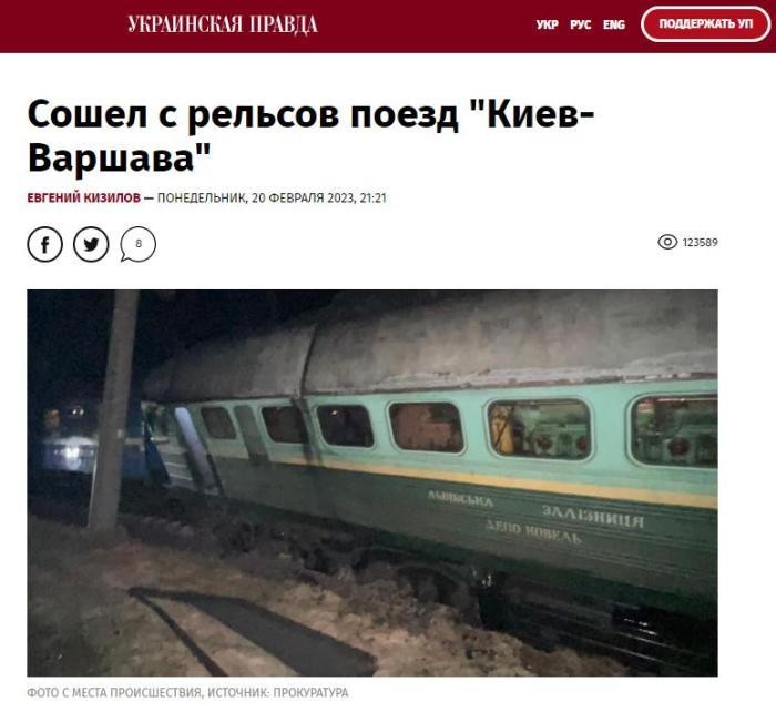 香港新聞網2月21日電  據《烏克蘭真理報》報道,當地時間19日晚,一列從烏克蘭首都基輔開往波蘭首都華沙的火車在烏克蘭西部脫軌。