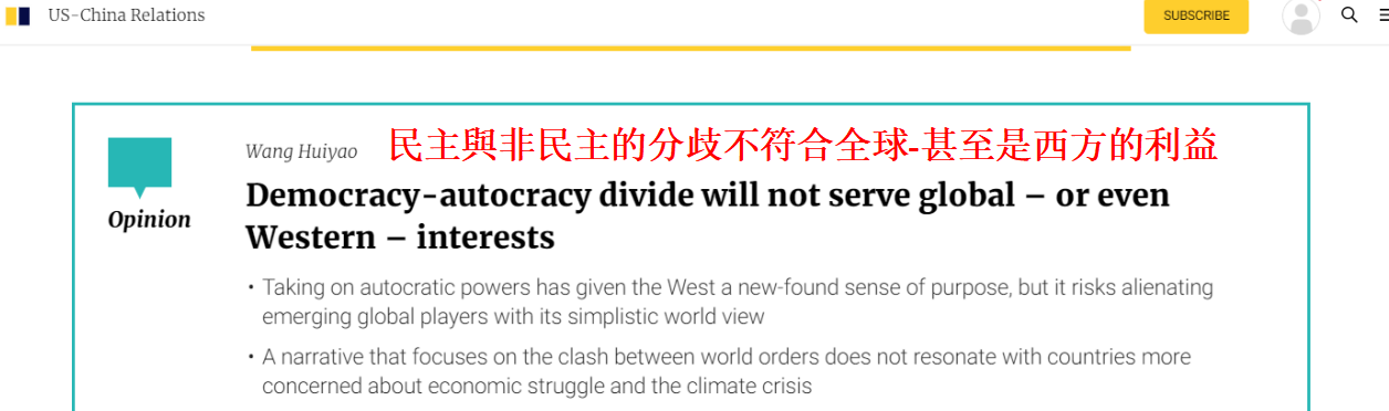 香港《南華早報》報道截圖 文章稱,上周,許多國家領導人和外交政策專家參加了在德國巴伐利亞州舉行的“慕尼黑安全會議”。 多年來,該活動一直是地緣政治轉變以及各國應對新威脅和挑戰的晴雨表。 該會議仍然是一個以北約為中心的活動,但隨著全球力量平衡的轉變,中國和印度等新興大國的代表在會議中受到了越來越多的關注。 今年的會議發生在“中國氣球”鬧劇和俄烏戰爭的背景之下,對於“中國威脅”和俄烏戰爭的炒作,使西方產生了一種新的“使命感”:民主與非民主之間的“巨大衝突”。 這種“二分法”已經成為了西方戰略討論的主導。它已經滲透進了美國的“國家安全戰略”和歐盟的“戰略指南針”中,也出現在了“慕尼黑安全報告”中。該報告警告稱,“競爭秩序”之間的分歧越來越大。 儘管“二分法”佔據了主導地位,但將世界定義為民主與非民主之間的競爭是否是解決衝突的最佳方式,還遠沒有結論,即使是從西方國家的利益出發。