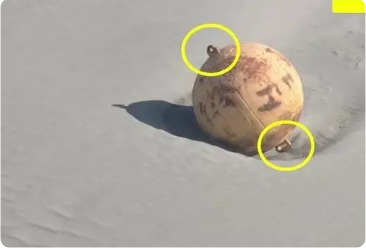 (視頻截圖) 報道稱,該不明球狀物體直徑約1.5米,呈現橙褐色,疑似鐵質,兩端有凸起的把手。警方趕往現場調查,封鎖了周邊200米範圍。目前,尚不清楚該球體是何物體。日本禦前崎海上保安署人員也表示疑惑,稱“以前從未見過”。 警方介紹,21日上午8時45分左右接到一名女子打來的報警電話稱,她和丈夫上周末散步時,發現一個巨大的圓形物體被衝上海灘。警方派遣爆炸物處理小組進行調查,經過分析工作,認為球體沒有爆炸的危險。(完) 【編輯:李彥洲】