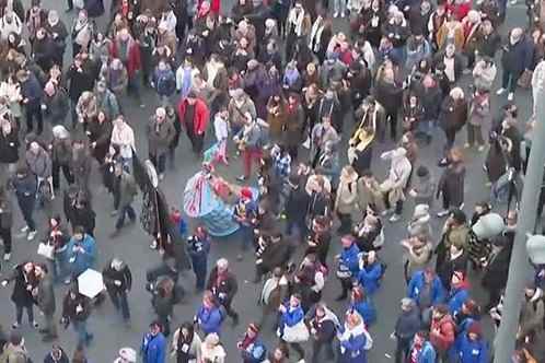 法國2月11日再爆發全國大遊行,反對政府退休制度改革,有近100萬人參與遊行示威。來源:視頻截圖 當日,法國總工會、法國工人力量總工會、統一教師工會等工會計劃舉行反對養老金改革方案的全國罷工。 據報道,這一天法國全國將舉行約270場示威遊行活動,預計約110萬至140萬人參加。 法國國家鐵路公司預計,當日將有五分之一的高速列車運行,幾乎所有的常規城際列車將被取消。 法國民航總局已要求航空公司在7日至8日,將巴黎戴高樂機場的航班減少兩成,將奧利機場的航班減少三成。 法國總統馬克龍正推動養老金改革,將最低退休年齡由62歲提高到64歲,指這對避免國家養老金制度崩潰至關重要。總理博爾內1月10日提交了這份有爭議的養老金改革草案,當局計劃在2023年通過。按照計劃,法國將從2023年9月1日開始逐步提高退休年齡,到2030年將達到64歲。 養老金改革草案在法國社會引發不滿,民眾迅速發起了抗議浪潮。僅1月份就舉行了五次全國性的反改革示威遊行,約有100多萬人參加。(完) 【編輯:胡雪石】