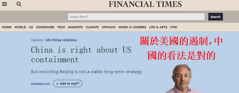 英國《金融時報》報道截圖 文章開頭提出了一個問題,“如果台灣不存在,中美兩國是否還存在對峙?”,其答案是肯定的,因為強國與正在崛起國家之間的對抗是人類歷史的一部分。 這表明,有關中美衝突的閑談不再是牽強附會。一般來說,一個國家並不會輕易的改變其立場。比如,中國希望西方為其屈辱的時代提供賠償。美國則是一個不斷尋求並摧毀“怪物”的危險國家。 現在的問題是全球的穩定能否在中美任意一方都堅持他們必須“勝利”的情況下存在。如今中美對峙最可能的替代方案不是一場和平的思想會議,而是戰爭。 本周,中國將美國列為“遏制,圍堵和打壓中國”的幕後推手。儘管這聽起來具有挑釁性,但從本質上講並沒有錯。美國總統拜登仍承諾將努力與中國合作,但他上個月就像“中國氣球”一樣被吹離了航線。美國對19世紀的氣球技術感到了“恐慌”,這使美國國務卿布林肯取消了中國之行。