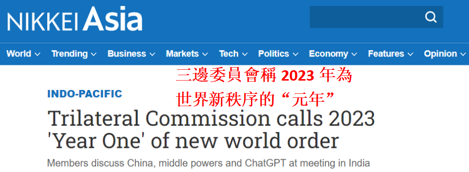 日本《日經新聞》報道截圖 三邊委員會,也叫作“美洲、歐洲和日本委員會”,是一個研究和商討世界經濟、政治問題的國際組織。因由北美、西歐和日本三個資本主義發達地區的人士組成,因此而得名。 文章稱,三邊委員會3月10日至12日在印度新德里舉行了第一次全球會議,參會者們主要討論了中國,中等強國和ChatGPT等問題。 當各國退休的外交部長、大使、首席執行官、銀行家和學者等秘密聚集於該會議時,一些具影響力的政治人物也靜靜地坐在一旁傾聽。 美國國防部淨評估辦公室主任詹姆斯·貝克不在參會名單上,但他在這次會議上的收穫可能會被納入塑造新世界的政策中。貝克是美國傳奇國防戰略家安德魯·馬歇爾的繼任者,他負責向美國國防部長提供未來20至30年美國相對於其他國家軍事能力的評估。
