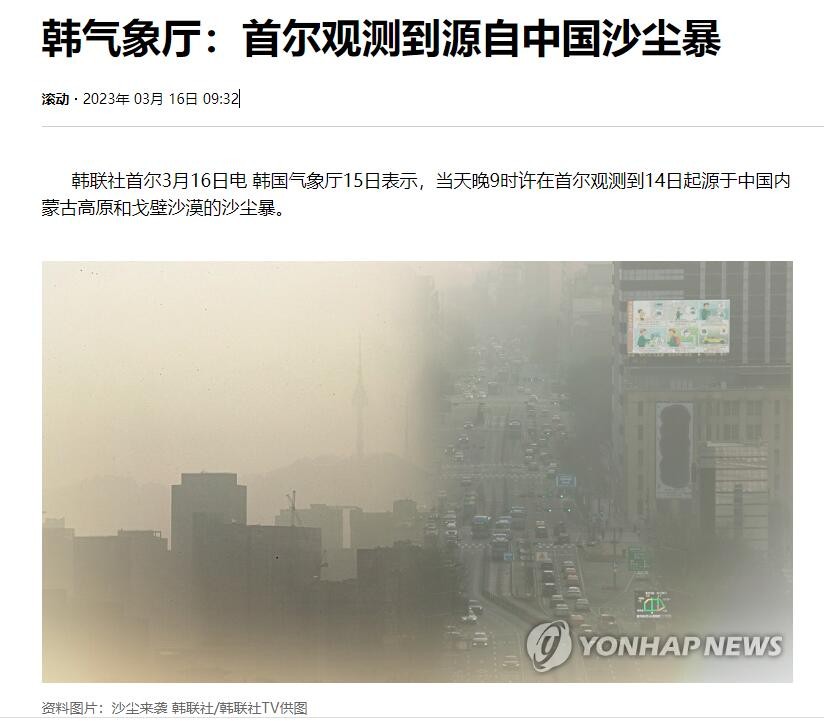 那麼,這場沙塵暴真的是起源於中國嗎?先來看下韓國的報道。韓聯社3月15日報道,韓國氣象廳表示,當晚9時許在首爾觀測到了沙塵暴,起源於中國內蒙古高原和戈壁沙漠,影響韓國中部地區西海岸。雖然韓國全國每小時平均可吸入顆粒物濃度一般,但首都圈、江原道、忠清北道地區的PM10濃度還是偏高。不過韓國并沒有因此發佈沙塵暴注意級別預警或沙塵暴預警。 再來看看中國與這場沙塵暴有關的報道。上海市環境監測中心、上海中心氣象台15日介紹,14日淩晨起,受冷高壓系統過境帶來的大風天氣影響,源自蒙古國東南部的沙塵過程自北向南影響中國東北地區南部及華北大部地區。 兩邊報道一對照就可以看出,這場沙塵暴來自蒙古國東南部,過境中國然後再到達韓國。然而,動不動就搞自己是萬物起源那一套,近年來無數次挪用中國文化,甚至將中國傳統文化拿去申遺的韓國,顯然看不上沙塵暴這種“含土量”太高、“土”到掉渣的東西,連起碼的查證恐怕都沒有,便借機甩鍋給中國。實際上,這在韓國早已是司空見慣的操作了。 關於沙塵暴的問題,中方早就回應過,韓國炒作的沙塵暴很多是來源於中國境外,中國只是“途經站”。 同時,中國也高度重視防沙治沙和荒漠化治理,而且取得了顯著成效。有數據顯示,中國治沙70年,最近10年森林面積增加近兩個韓國國土面積。 近年來中日韓三國專家的共同研究也發現,韓國空氣污染物中的51%來自本國境內。韓國還曾經和美國國家航空航天局(NASA)一起調查過霧霾的成因,調查表明,韓國國內因素的影響更大。 對於韓國這波秀下限的操作,中國網友也紛紛吐槽,“韓國居然有主動聲稱某件事物發源於中國的一天?”