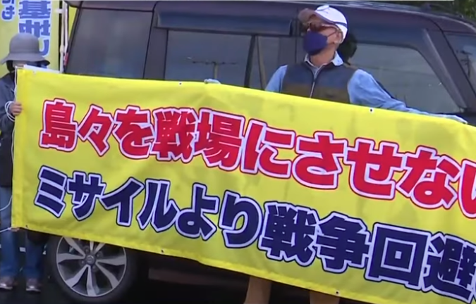 (視頻截圖) 據報道,居民們從上午8點左右開始聚集,手舉橫幅,上面寫有“不能把島嶼變為戰場”。其中一名居民表示,“之前從未在石垣見到過槍支和穿迷彩服的自衛官。不拆除基地絕不罷休。” 報道稱,居民團體代表向駐地負責人遞交了抗議書。 日本防衛省3月16日在沖繩縣石垣島設立當地首個陸上自衛隊據點,面積約47公頃,有約隊員570人,並將在石垣島部署導彈部隊。 駐地由負責石垣島、與那國島等島嶼防衛和警備的“八重山警備隊”,以及可運用12式陸基反艦導彈、03式中程防空導彈的導彈部隊等組成。 這是日本陸上自衛隊在沖繩本島以外,在西南群島設駐囤地的第4處。石垣島距離台灣僅270公里。(完) 【編輯:李雪萍】