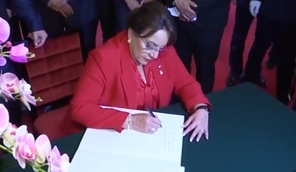 中國國務委員兼外長秦剛26日在北京與洪都拉斯外長雷納舉行會談,並代表兩國政府簽署中洪建交公報。秦剛表示,中方歡迎洪都拉斯總統卡斯特羅在建交後盡快訪華。(完)