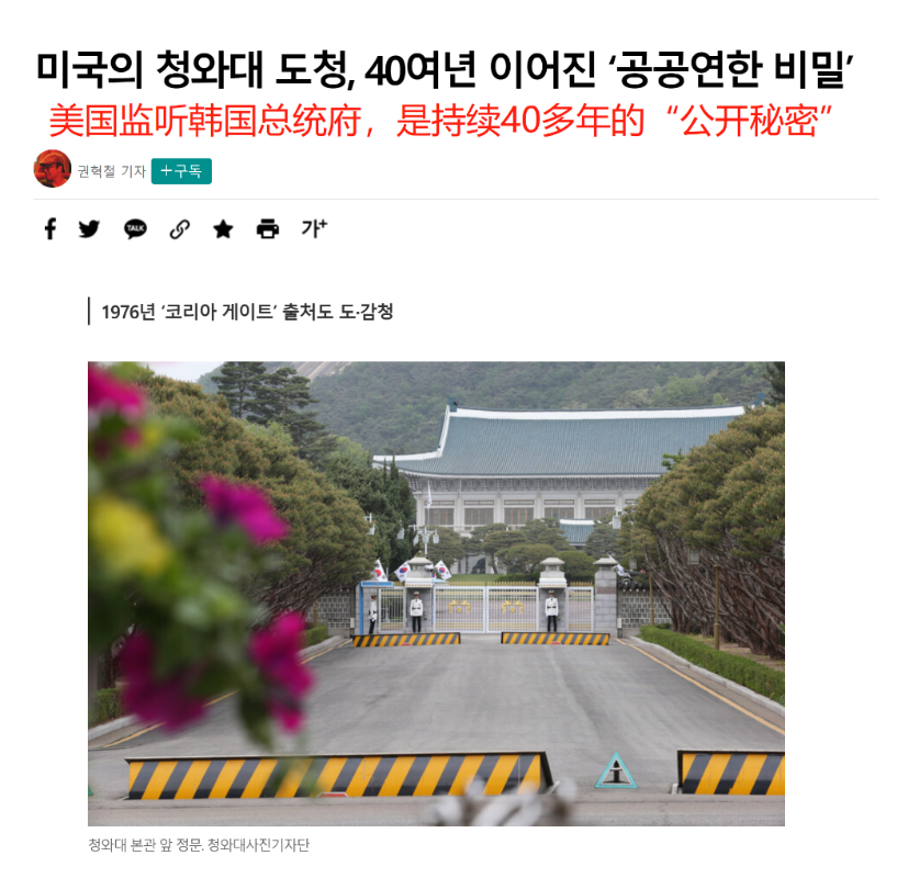 韓媒報道截圖 據《韓民族》報道稱,20世紀70年代,在韓國和美國就駐韓美軍撤離、韓國人權問題等發生爭執的背景下,美國中央情報局被曝出竊聽時任韓國總統樸正熙。《紐約時報》稱,美方利用“高性能定向電波探測”,通過玻璃窗的震動等手段竊聽。此後,樸正熙為了躲避竊聽,不再在辦公室談論重要的事情,而是在青瓦台院子裡邊逛邊說。 美國前駐韓大使威廉•波特也曾證實韓國總統府遭監聽。1978年4月,他接受一家美國媒體采訪,被問及“美國政府是否在青瓦台安裝過竊聽裝置”時表示,他上任之前,聽說了竊聽被中斷的報告。 報道還盤點了美國監控全球的黑歷史,稱在2013年,美國被曝竊聽了包括韓國駐美大使館在內的38個國家的旅美使領館。美國國家安全局職員斯諾登也揭露了美國一直監視同盟國的事實。另據維基解密披露,2008年,美國國家安全局甚至竊聽了時任聯合國秘書長潘基文和時任德國總理默克爾的對話。 【編輯:彭玉婷】