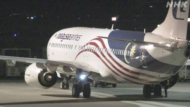 日本警方包機押解19名電騙嫌犯從柬埔寨抵達羽田機場。圖源:NHK截圖 由於人數眾多,日本警視廳安排包機,取得逮捕令後動員約50名調查人員同行,在機上逮捕19名疑犯,並在詐騙集團成員下機後押往警署受查。
