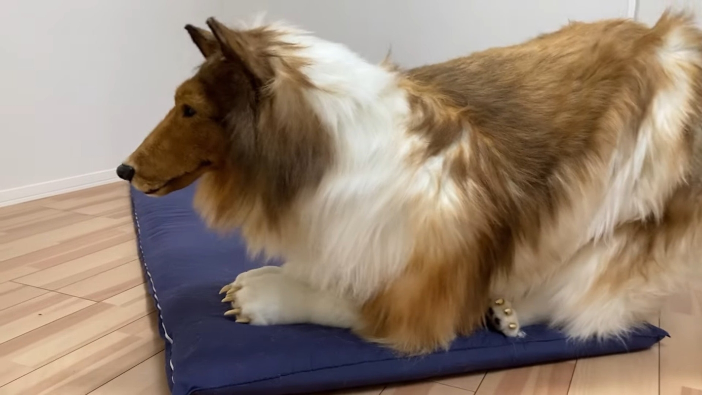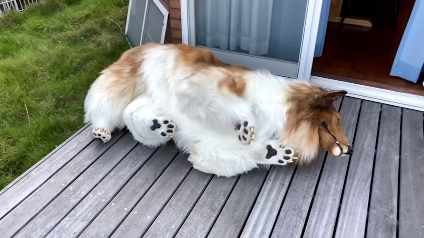 日本有一名男子從小的夢想就是要當狗。視頻截圖。 根據《每日郵報》報道,日本一名名叫Taco的男子,在2022年花了200萬日幣,訂製了一套牧羊犬的布偶裝,並在等待了長達40天之後,如願能夠將其穿上,並化身成他夢寐以求想要成為的四腳動物。為此,Taco更是創立了YouTube頻道“動物になりたい(I want to be an animal)”,紀錄他的生活點滴。