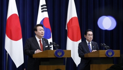 香港中通社5月4日電 當地時間5月4日上午,韓國最大的在野黨共同民主黨同韓國多個市民團體的代表在韓國國會舉行集會,抗議日本首相岸田文雄即將訪問韓國。