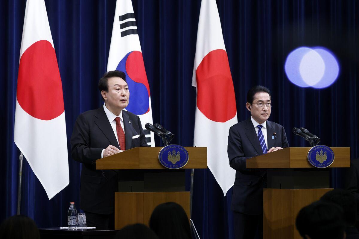 尹錫悅3月份率先訪問日本。3月16日,尹錫悅和岸田文雄在東京會面。圖自外媒 報道繼續披露,即將在總統府舉行的晚宴還將提供韓國料理。據知情人士透露,尹錫悅打算為岸田提供炭火烤肉,整個用餐過程中還將提供韓國米酒,韓國執政黨國民力量黨高層官員透露,隨後“最有可能”提供“深水炸彈”雞尾酒。 彭博社說,此次晚宴是在首爾舉行的為期兩天韓日首腦峰會的一部分,是日韓時隔12年來首次重啟穿梭外交,旨在加強美國盟友之間的關係。彭博社稱,上一次這樣的會晤是在2011年10月,當時的日本首相野田佳彥訪問韓國期間,還與韓國時任總統李明博品嚐了腌牛排、燒酒和米酒。 韓國總統尹錫悅3月份率先訪問日本後,日本首相岸田文雄也將於本月7日訪韓,兩國時隔12年重啟首腦間穿梭外交。而韓國國內,反對“對日開展屈辱外交”的聲音一直不斷,韓國多個市民團體4日公開表示,岸田訪韓期間將連日舉行多場抗議集會。 【編輯:俞丹鳳】