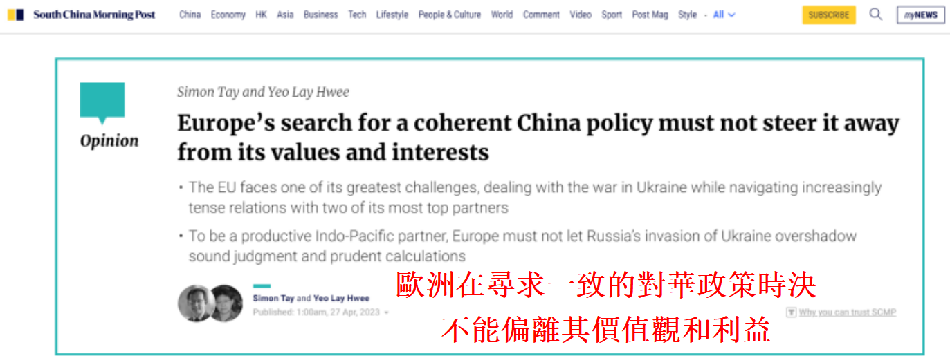 香港《南華早報》報道截圖 文章稱,馬克龍在荷蘭尼克薩斯研究院的公開演講中為自己的涉華言論進行辯護。馬克龍重申了長期以來對“歐洲戰略自主權”和“捍衛歐洲主權”的呼籲。他還補充稱,成為美國的“盟友”并不意味著成為“附庸”。 荷蘭首相馬克·呂特也表示,他和馬克龍都認可跨大西洋夥伴關係的重要性。與此同時,“一個開放和戰略自主的歐洲將能够發展與世界其他地區的關係,從而成為一名參與者,而不是一個競技場”。 這些不同的言論正是歐盟的癥結所在,經過幾十年的和平,歐盟正面臨著最大的挑戰。即不僅要應對俄烏戰爭,又要應對美國(歐盟最重要的盟友和安全保障者)與中國(歐盟最重要的經濟夥伴,同時也是競爭對手和制度性對手)之間日益緊張的關係。 在中美競爭的大背景下,歐盟在處理與中國的關係時,需要確定“堅決地”站在美國一邊是否符合歐盟的戰略利益。 為了表明歐盟對中國戰略的一致性,馬克龍要求歐盟委員會主席馮德萊恩一同訪華。在訪問前,馮德萊恩強調稱歐盟將“去風險化”而非“脫鈎”視為與中國經濟關係的基礎。