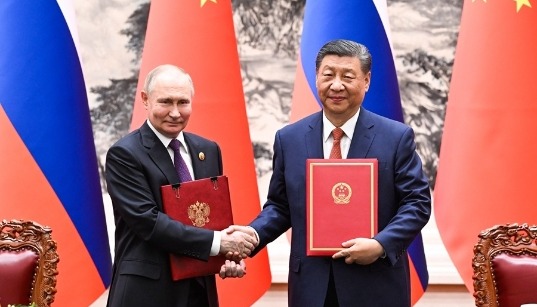 香港中通社5月24日電 俄羅斯總理米舒斯京23日在俄中商務論壇上談及雙邊關係時,引用了一句唐詩:“欲窮千里目,更上一層樓”,寓意兩國進入新時代全面戰略協作夥伴關係。