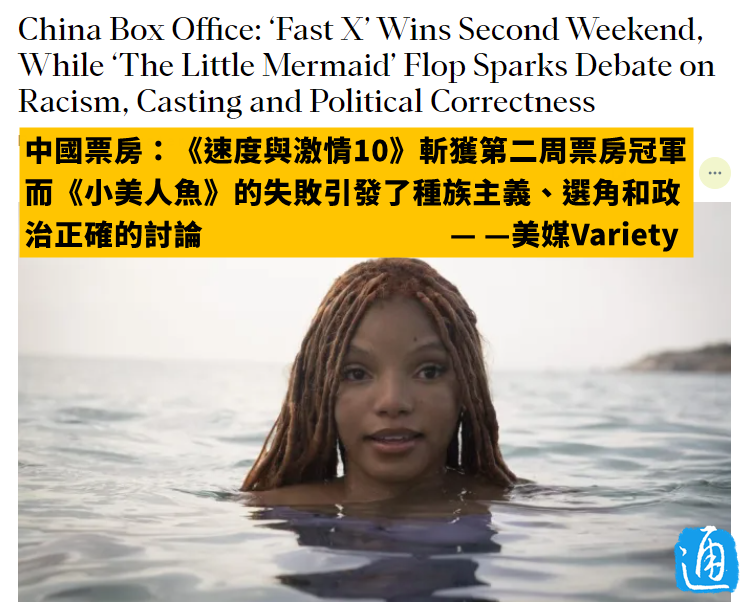 Variety文章截圖 美國娛樂周刊Variety當地時間28日以“中國票房:《速度與激情10》斬獲第二周票房冠軍,而《小美人魚》的失敗引發了關於種族主義、選角和政治正確的討論”為題發表文章。 儘管好萊塢電影《速度與激情10》連續兩周登上中國票房榜首,但文章認為另一部好萊塢電影《小美人魚》在華令人失望的開局才是更值得談論的話題,并就此質疑“中國觀眾是否願意觀看突出黑人角色的電影”。 針對這類給中國觀眾扣帽子的輿論,《環球時報》早前曾回擊,“圍繞迪士尼強行將少數族裔納入經典電影的爭議與種族主義無關,而是其懶惰和不負責任的講故事策略。”“中國與非洲一直保持著兄弟般的關係,從來不需要好萊塢盛行的‘贖罪’心態。” 引述完中國媒體這番話,文章接著就為迪士尼打抱不平:“迪士尼在中國的路真不好走”,又稱“國安問題和政治敏感性如此突出的環境下,在中美之間找到一個愉快的媒介真不容易”。 部分美媒想把“種族主義”的鍋往中國身上一扣到底來掩飾電影本身的問題,但現實是藏不住的——《小美人魚》在全球多地票房慘淡且口碑不佳。 據Bounding Into Comics消息,有票房分析人士預測,這部造價超過2.5億美元的電影將以票房慘敗的成績告終,可能虧損5千萬至1億美元。