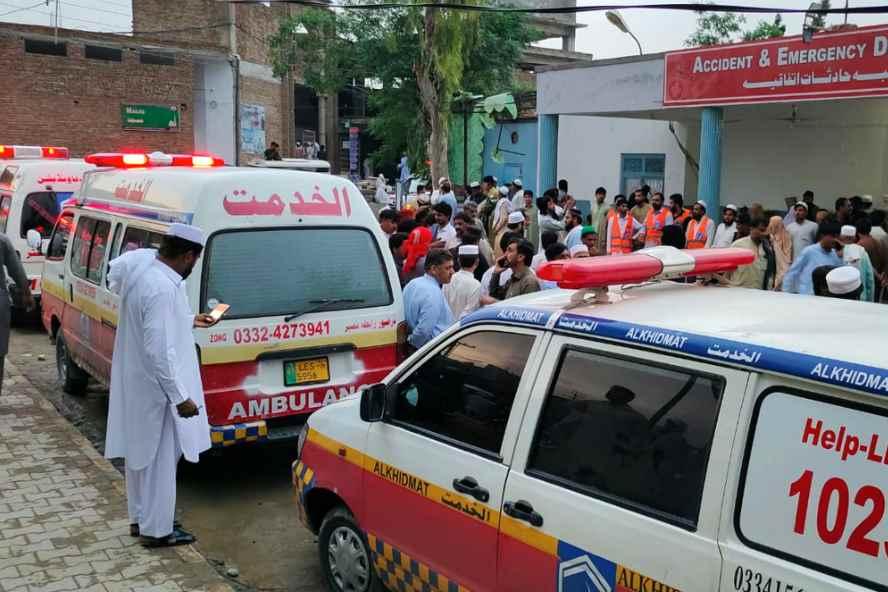 6月10日,載有傷者的救護車停在巴基斯坦本努地區一家醫院外。新華社圖片 開伯爾普什圖省的四個城市,10日颳起強風暴雨,導致能見度極低。不少房屋和大樹也因此倒塌。當局宣布這些地區進入緊急狀態。 該省強降雨引發的各類災害已造成包括8名兒童在內的27人死亡,另有147人受傷。 巴基斯坦總理夏巴茲·謝里夫發表聲明,對災害中的遇難者表示哀悼,並指示國家災害管理局和有關省政府立即開展救援工作。他將強降雨引發的災害歸咎於氣候變化,並稱巴基斯坦是受氣候變化影響最大的國家之一。 巴基斯坦地處南亞次大陸,通常每年6月至9月為季風雨季,洪災多發。去年,巴基斯坦遭遇多輪暴雨侵襲,引發嚴重洪澇災害,造成1700多人喪生,約3300萬人受到影響。(完) 【編輯:凌玉辉】
