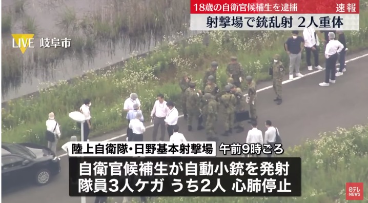 日自衛隊槍殺案警方調查現場 視頻截圖 共同社15日引述辦案人員消息,該候補員還說,他並非有意瞄準另一名死亡的25歲隊員,只是因該隊員試圖阻止自己開槍而遭射擊。 當局懷疑候補員襲擊目標可能是教官,正調查是否存在糾紛及事發時的情況,以謀殺罪移交檢察院。 防衛大臣濱田靖一14日表示,事件給國民造成了極大憂慮,為此由衷致歉。 主管陸上自衛隊的陸上幕僚長森下泰臣亦致歉。他表示,不能容忍發生這類事件,將非常嚴肅地處理。 據自衛隊介紹,死亡的52歲隊員胸部中彈,25歲隊員側腹部被擊中。另一名隊員左腳受傷。事發後,自衛隊暫停所有實彈射擊訓練。 報道又指,開槍的候補員使用的是入隊時借給隊員的“89式5.56毫米步槍”,可切換單發與連發。原定的射擊訓練共5次,其中4次使用實彈。14日是最後一次訓練,約70名候補生、50名教官等負責指導的隊員合計約120人參加。(完) 【編輯:梅婉潼】