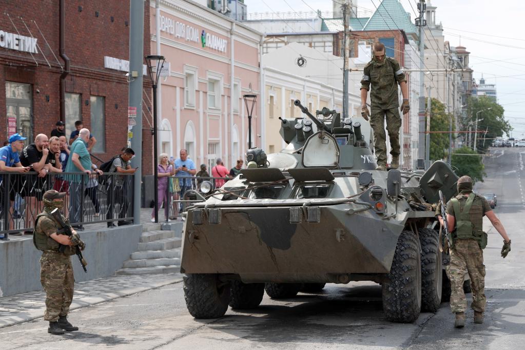 這是6月24日在俄羅斯頓河畔羅斯托夫拍攝的瓦格納組織武裝人員及裝甲車輛。新華社圖片 俄總統新聞秘書佩斯科夫當地時間6月24日晚上表示,俄羅斯和白俄羅斯兩國總統當天上午通電話商定,由白俄羅斯總統盧卡申科就瓦格納雇傭兵集團的事件居中協調,最終目標是避免內部對抗。根據白俄羅斯方面協調的結果,瓦格納雇傭兵將返回自己的營地,針對瓦格納雇傭兵集團創始人普里戈任的刑事立案將被撤銷,普里戈任將前往白俄羅斯。佩斯科夫說,因6月24日叛亂行動而宣佈實施的反恐行動將在近期取消。 據俄媒報道,當地時間6月25日,瓦格納雇傭兵集團人員已從俄羅斯南部利佩茨克州和沃羅涅日州撤離。 截至目前,尚無瓦格納雇傭兵集團人員最終去向的相關報道。 俄塔斯社報道說,瓦格納雇傭兵集團人員及其所有重型軍事裝備6月24日深夜已完全離開頓河畔羅斯托夫。羅斯托夫州州長戈盧別夫證實了這一消息。頓河畔羅斯托夫是俄南部軍區總部所在地。(完) 【編輯:馬華】