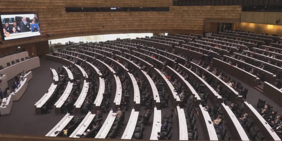 泰國國會 視頻截圖 當地時間13日,泰國國會舉行總理選舉。遠進黨黨魁皮塔是唯一提名的總理候選人。 當日下午,經兩院議員投票,皮塔得票數最終沒有超過國會兩院750票的半數,未能當選泰國總理。泰國國會將在此後再次舉行總理選舉。 泰國國會由下議院和上議院共750名議員組成,獲得全部議員半數以上(即至少376票)支持的候選人當選為總理。(完) 【編輯:梅婉潼】