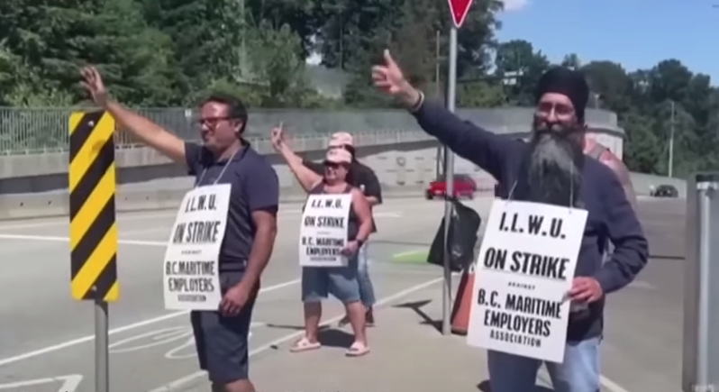 加拿大西海岸港口工人大罷工 視頻截圖 據中國新聞網報道,位於太平洋沿岸的加拿大卑詩省(又譯不列顛哥倫比亞省)30餘個港口的約7400名工人自7月1日、即加拿大國慶日開始罷工。勞資雙方的關鍵矛盾是薪資、維護工作外包,以及港口自動化。加拿大最大、最繁忙的港口溫哥華港也在此次罷工直接影響範圍內。 工會組織“加拿大國際碼頭和倉庫聯盟”透露,在聯邦調解員為和解條款設定的談判最後時限前,該聯盟與資方達成臨時協議。 代表資方的卑詩省海事雇主協會披露,雙方已就一項為期4年的新臨時協議達成共識。該協會就罷工對經濟、企業、工人、客商及民眾造成的重大影響表示遺憾。該協會表示,須盡快安全地恢複港口貨運,并重塑加拿大“最大門戶”的聲譽,確保供應鏈的穩定性及未來的複元力。 由於該臨時協議尚待勞資雙方確認批准,因而協議細節暫未公佈。 加勞工部長奧雷根和交通部長艾誠致在一份聯合聲明中表示,罷工的破壞程度巨大。雙方在集體談判桌上達成協議是保持加拿大經濟長期穩定的最佳辦法,但希望此情形不再發生。 大溫哥華貿易委員會稱,這是該機構近40年來遭遇過的持續最長的港口罷工。該委員會估算,約6.3萬個集裝箱在到港船舶上等待卸貨;截至13日上午,受到罷工影響的貿易額約97億加元。 【編輯:梅婉潼】