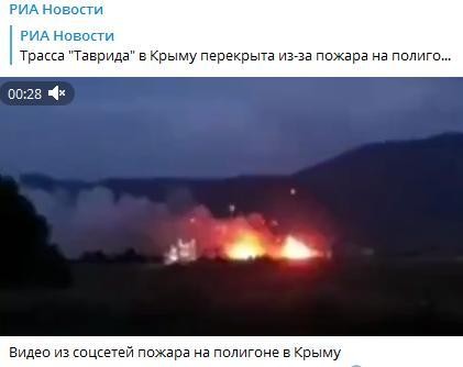 社交媒體上發佈的視頻顯示克里米亞一訓練場發生火災。圖自俄新社社交媒體截圖 據環球網引述《報紙報》報道,阿克肖諾夫當天還在Telegram上稱,當地政府計劃疏散該訓練場周邊4個居民點的居民,疏散人數超過2000。不過,報道未明確說明此次火災的具體原因。 另外,俄羅斯發佈新聞的Telegram賬號“Mash”19日發帖稱,克里米亞基洛夫區一個軍事訓練場的彈藥倉庫發生火災,周邊居民說能聽到爆炸聲。 【編輯:梅婉潼】
