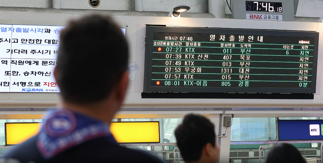 韓國車站的電子顯示屏 資料視頻截圖 據警方和韓國鐵道公社消息,當天上午5時30分許,一名身份不明的男子突然跳入軌道,被從首爾站開往釜山站的KTX列車撞軋身亡。事發後,涉事列車停運以處理事故現場,地鐵1號線、KTX列車、普通列車等調整線路,造成多班列車延誤。韓國鐵道公社稱,涉事列車已於當天上午7時42分許恢復正常運行,但周圍線路需再用一段時間進行整修。 事發時段恰逢上班高峰,給利用地鐵和KTX等列車出行的廣大市民帶來不便。警方正在調查死者身份和事故發生原委。 日前在21日下午,韓國首爾冠岳區新林洞地鐵新林站4號出口附近發生持刀傷人事件,造成1人死亡、3人受傷送醫。警方在現場逮捕了嫌疑人。警方指,30歲的男性嫌疑人在案發地點“瘋狂捅人”。據報道,嫌犯被捕時高喊“不想活了”。(完) 【編輯:梅婉潼】