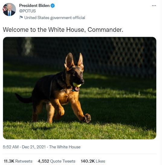 香港新聞網7月26日電 美媒26日報道,美國總統拜登的一隻名叫“指揮官”的寵物狗,在2022年10月至2023年1月期間,咬傷或攻擊特勤局人員至少10次,其中一次事件導致一名人員住院醫治。 圖片來源:美國總統拜登社交媒體截圖 美國保守派監督組織“司法觀察”25日公布了近200頁的特勤局記錄。據《國會山報》報道,在2022年11月的一次事件中,“指揮官”衝向一名特勤局人員,“表現出了極具攻擊性的行為”,第一夫人吉爾“沒法再控制它”。 遇襲的人員表示:“我相信,特工或官員遭到襲擊或被咬,只是時間問題。” 2021年,拜登的一隻德國牧羊犬“梅傑”在白宮發生數起攻擊性事件後,被“驅逐”到位於特拉華州的家中。 同年12月,拜登在社交媒體發文,稱他養了一條新的小狗,名叫“指揮官”。隨後,美國第一夫人吉爾的發言人證實,這條狗出生於9月1日,是拜登的哥哥詹姆斯·拜登夫婦送給拜登的生日禮物。 美聯社稱,白宮和特勤局似乎想淡化影響,但最新的事件仍然引發了人們的疑問:為什麼拜登一家將另一隻德國牧羊犬帶到白宮?為什麼襲擊仍在繼續?