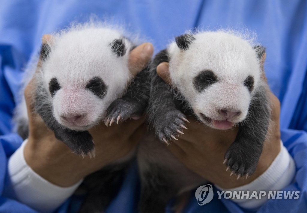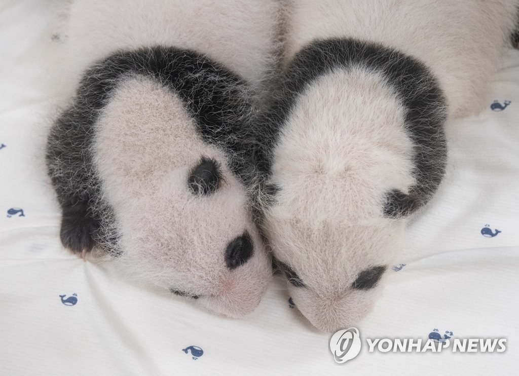 圖源:韓聯社及愛寶樂園 從當天公開的照片來看,這對熊貓寶寶已慢慢開始長胖,在眼睛、耳朵、肩膀、胳膊、腿周圍,熊貓獨特的黑色斑紋顯現。 考慮到熊貓媽媽愛寶難以同時兼顧兩個寶寶,愛寶樂園方面在母乳哺乳的同時實施人工餵養,讓雙胞胎萌寶能夠均勻享受媽媽溫暖的懷抱。 愛寶於7月7日淩晨4時52分和6時39分誕下這對雌性幼崽,雙胞胎出生時的體重分別是180克和140克,出生第30天的體重分別為1.1公斤和1.2公斤。預計熊貓幼崽們將從4個月大開始學習爬行,6個月左右開始吃竹子,之後將與遊客見面。