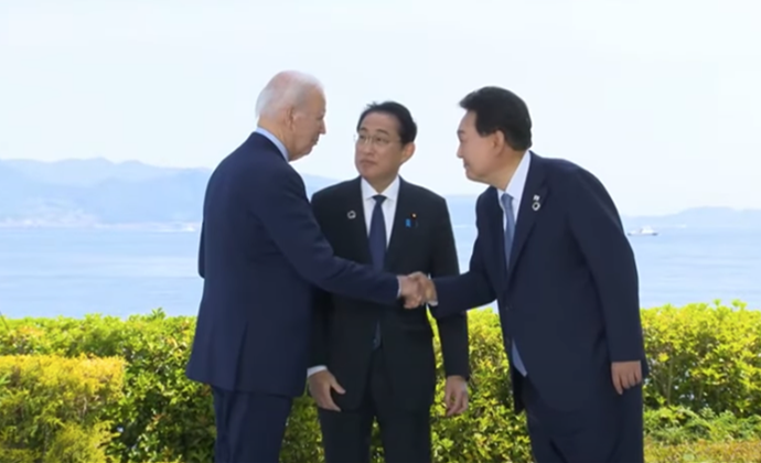 美國總統拜登、日本首相岸田文雄與韓國總統尹錫悅(圖左至右)視頻截圖 不願具名的官員表示,雖然此次峰會不太可能達成一項正式的安全安排,但三方將同意就地區責任達成相互諒解,並設立一條三方熱線電話以在危機時刻進行溝通。 美國總統拜登邀請日本首相岸田文雄和韓國總統尹錫悅前往馬里蘭州鄉村的總統度假地戴維營。這是拜登首次在戴維營接待外國領導人,也是美日韓三國領導人首次單獨舉行峰會。 一位美國官員表示,“我們將採取一些措施,在安全領域上把我們更緊密地聯繫在一起”,這樣做將“增進我們的集體安全”。 但這位美國官員還說,“要完全期望我們之間建立一個三方安全框架,實在是為時過早。然而,我們正在採取措施,使各國了解在地區安全方面的責任,並且我們正在推進協調和彈道導彈防禦的新領域,這將被視為非常實質性的推動。” 預計峰會將發表三方聯合聲明。一位官員表示,三國聯合聲明將包含有關維護台灣海峽和平與穩定的內容。 日韓之間的外交關係已得到改善。現在,這三個國家正試圖使這種三邊關係變得更加持久,尤其希望通過每年的聯合演習強化三國軍隊的關係。 另據韓聯社消息,美國國務院稱美國國務卿布林肯、韓國外交部長官朴振、日本外相林芳正將於韓國時間15日上午以視頻方式開會,討論將於戴維營舉行的三國首腦峰會。 有觀測認為,韓美日首腦將在峰會上討論三國合作的共同願景、基本原則、構建多元化合作體系、共同應對朝鮮核導威脅等實質性的合作方案,還有望討論將三國的合作外延從傳統安全領域拓展到人工智能、經濟安全、網絡等領域。(完) 【編輯:梅婉潼】