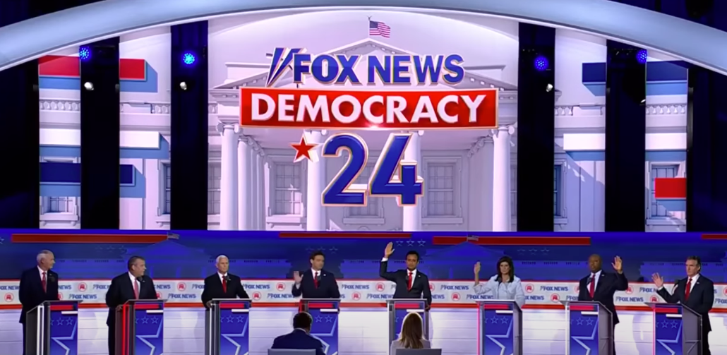 香港中通社8月24日電 美國2024年大選共和黨總統競選人首場電視辯論當地時間23日晚在威斯康星州密爾沃基市舉行。在各項民調中領先的前總統特朗普未參加當晚辯論。